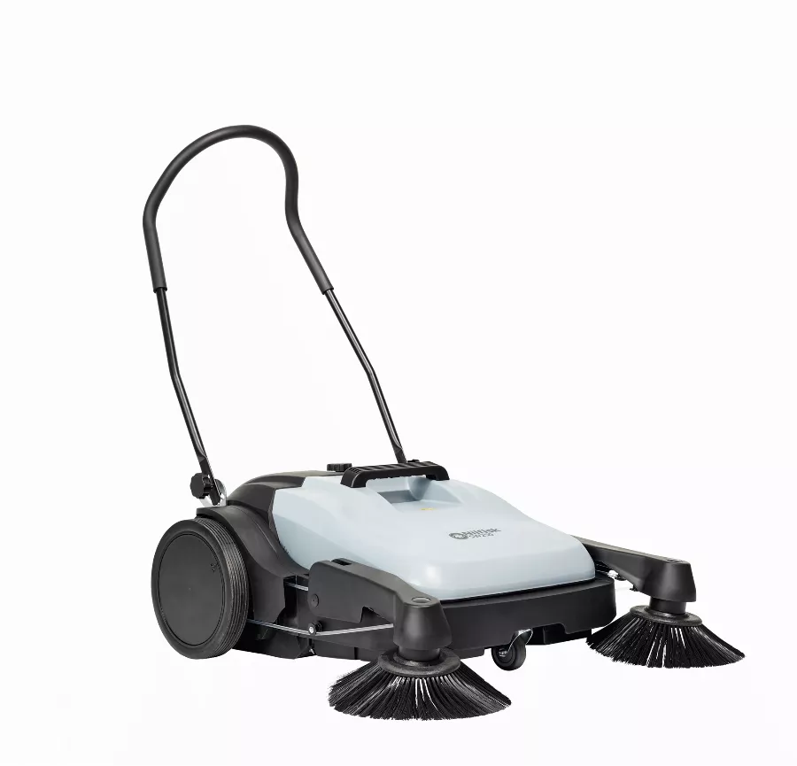 - Facile à manoeuvrer : les larges roues non marquantes permettent à l’utilisateur de pousser et manoeuvrer facilement la balayeuse