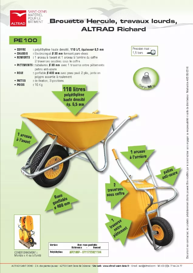COFFRE : polyéthylène haute densité, 110 L/T, épaisseur 6,5 mm