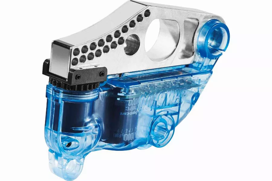 - Le sciage n’a jamais été aussi sûr : en cas de contact avec la peau, la cartouche libère un ressort précontraint et projette un bloc d’aluminium contre la lame de scie.