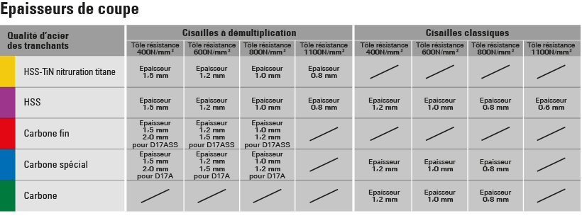 - Cisailles à démultiplication, bichantourneuse et à coupe continue.