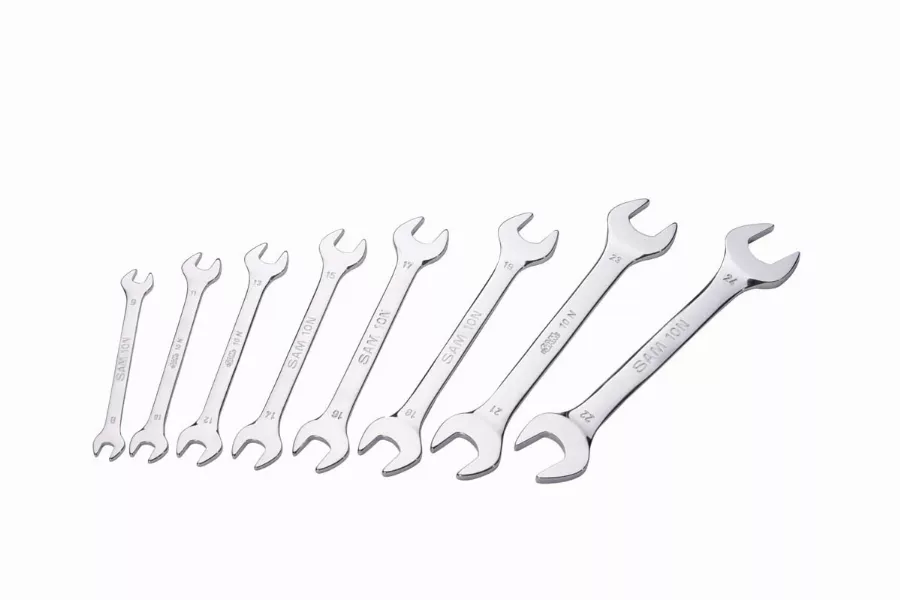 Jeu de 8 clés à fourches forgées en acier au chrome vanadium.