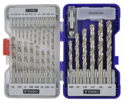 Coffret 26 Pièces TIVOLY – 25 Forets Métaux HSS Taillés Meulés Pointe En Croix Ø 2 à 13mm + 1 Fraise à Noyer HSS Ø 16,5mm – 11452070002