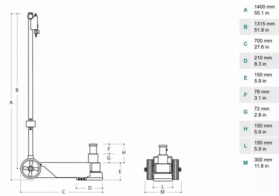 - Cric oléopneumatique pratique et maniable pour poids lourds.