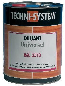 – Diluant Universel 2510 : pour vernis de fond et de finitions, apprêts et laques cellulosiques, précatalysés ou polyuréthanes.