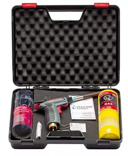 - Cette offre « Spécial Clim » comprend non seulement le pistolet chalumeau Vulcane Express accompagné d’une lance « spécial clim » qui permettent de traiter respectivement des tubes Ø 35 mm, mais également le déjà fameux tuyau d’extension