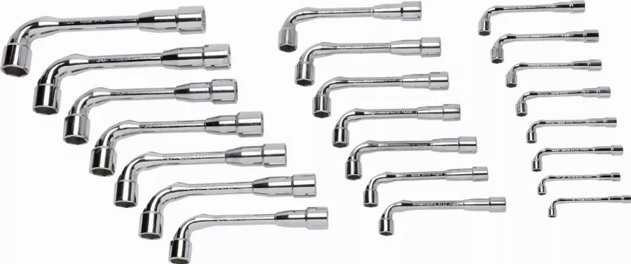 Jeu de 22 clés à pipe ouverture 6×6 pans en mm débouchées livrées en boîte.