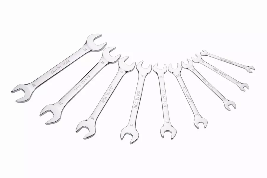 Jeu de 9 clés à fourche forgées en acier au chrome vanadium.
