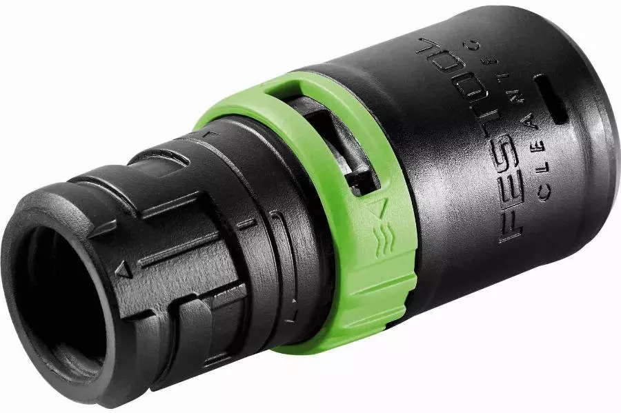 - Le raccord à baïonnette intégré relie le manchon de raccordement du tuyau d’aspiration de façon sûre et rapide au raccord d’aspiration de l’outil électroportatif.