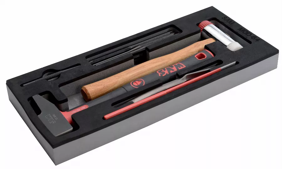 Composition de 10 outils à frapper livrés en module mousse.