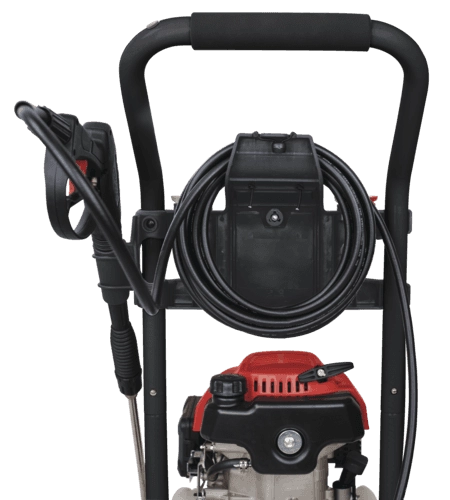– Nettoyeur haute pression livré avec 5 buses, 1 lance, 1 tuyau de 7,5m et 1 réservoir à détergent incorporé.