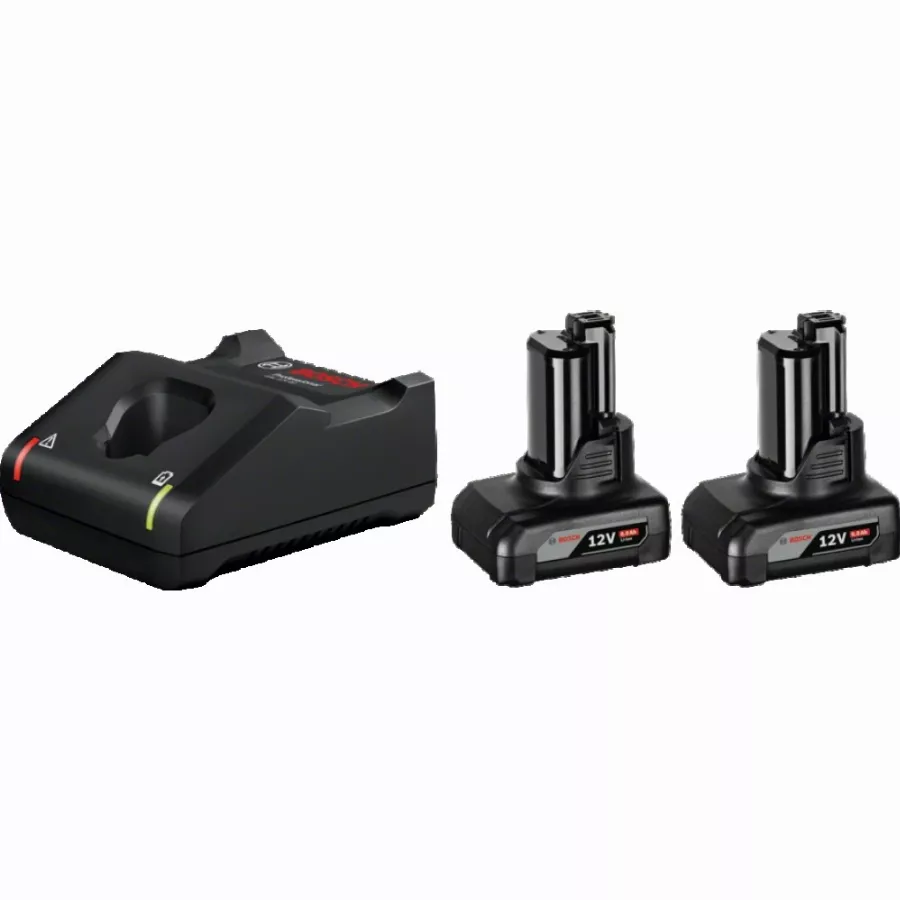 - Pack Bosch composĂ© de 2 batteries GBA 12V 6.0 Ah et d’un chargeur rapide GAL 12V-40.