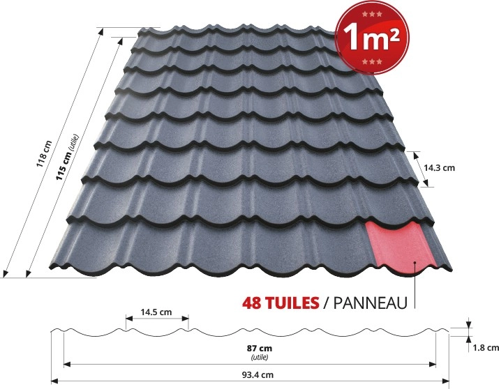 Panneau De Tuile Repositionnable BACACIER – 1m² (L115cm X L87cm) – Couleur Quartz – Tuile R Originale
