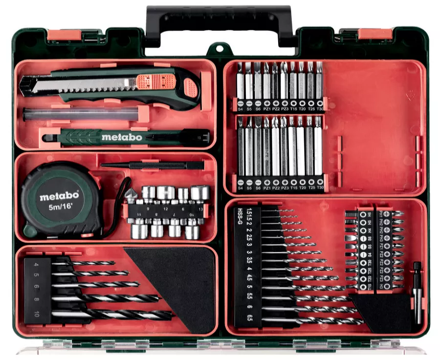 - Atelier mobile : coffret comprenant de nombreux accessoires pour le perçage, le vissage et plus encore