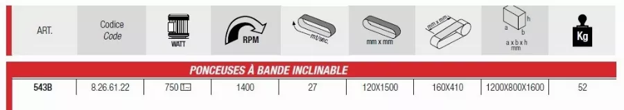 - Cette ponceuse à bande Femi 543B est livrée avec :