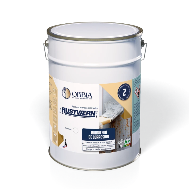 - RUSTVÆRN® est prêt à l’emploi. RUSTVÆRN® doit être correctement homogénéisé avant emploi afin d’obtenir une répartition régulière des pigments inhibiteurs de corrosion. RUSTVÆRN® peut être dilué pour les applications au pistolet, au moyen du diluant OBBIA TS1025. Voir fiche technique. Ne pas utiliser de white-spirit ni de diluant gras.