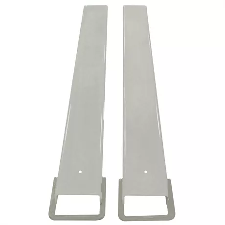 - Ces rallonges de fourches disposent de la norme ISO 13284 : au minimum 60% de la longueur de la rallonge de chaque fourche doit être sur la fourche du chariot élévateur (par exemple : pour une fourche de longueur 1500 mm, la longueur maximale des rallonges est 2400 mm)
