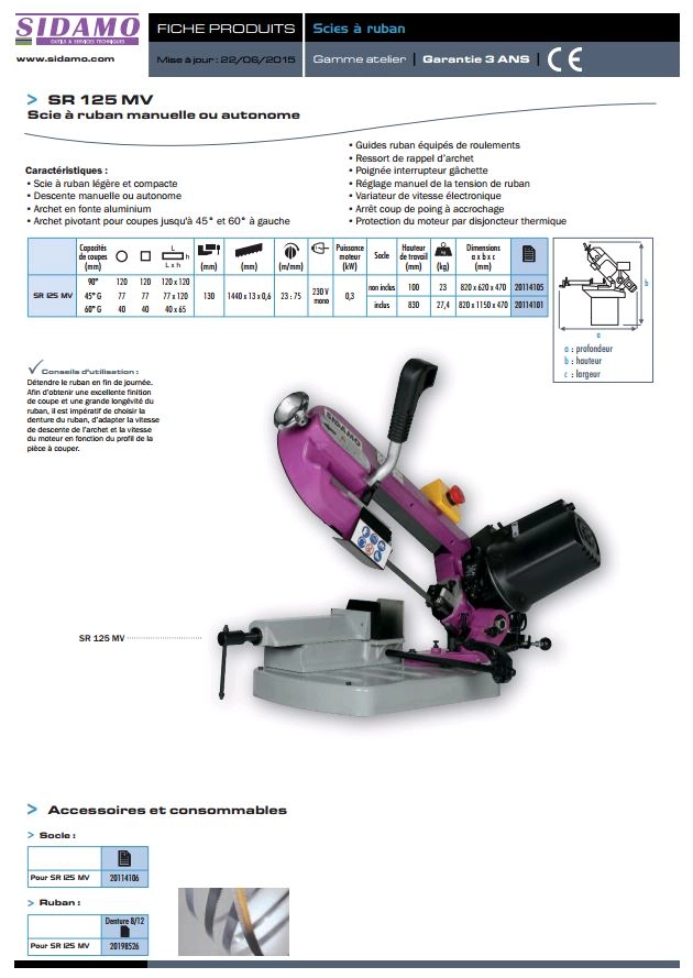 - Capacité de coupes (mm) à 60° G en rectangle: 40×65