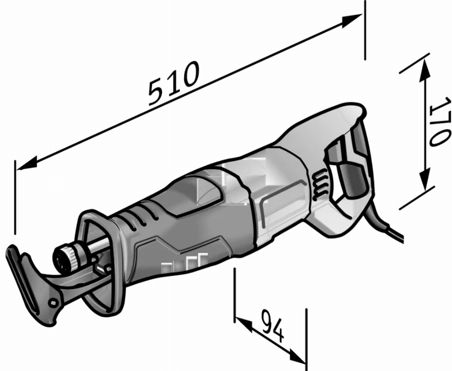- Dimensions (L x l x H) 510 x 94 x 170 mm