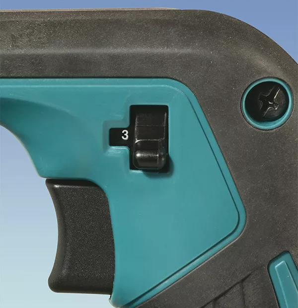 - Variateur de vitesse : La vitesse de l’outil augmente à mesure que l’on accroît la pression exercée sur la gâchette