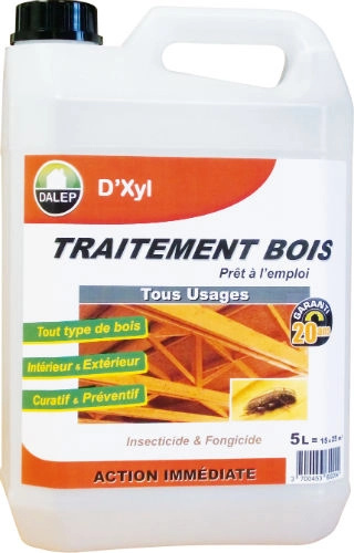 - D’XYL Tous Usages est un produit « prêt à l’emploi » insecticide, fongicide et antitermites, pour le traitement préventif et curatif des bois de construction :