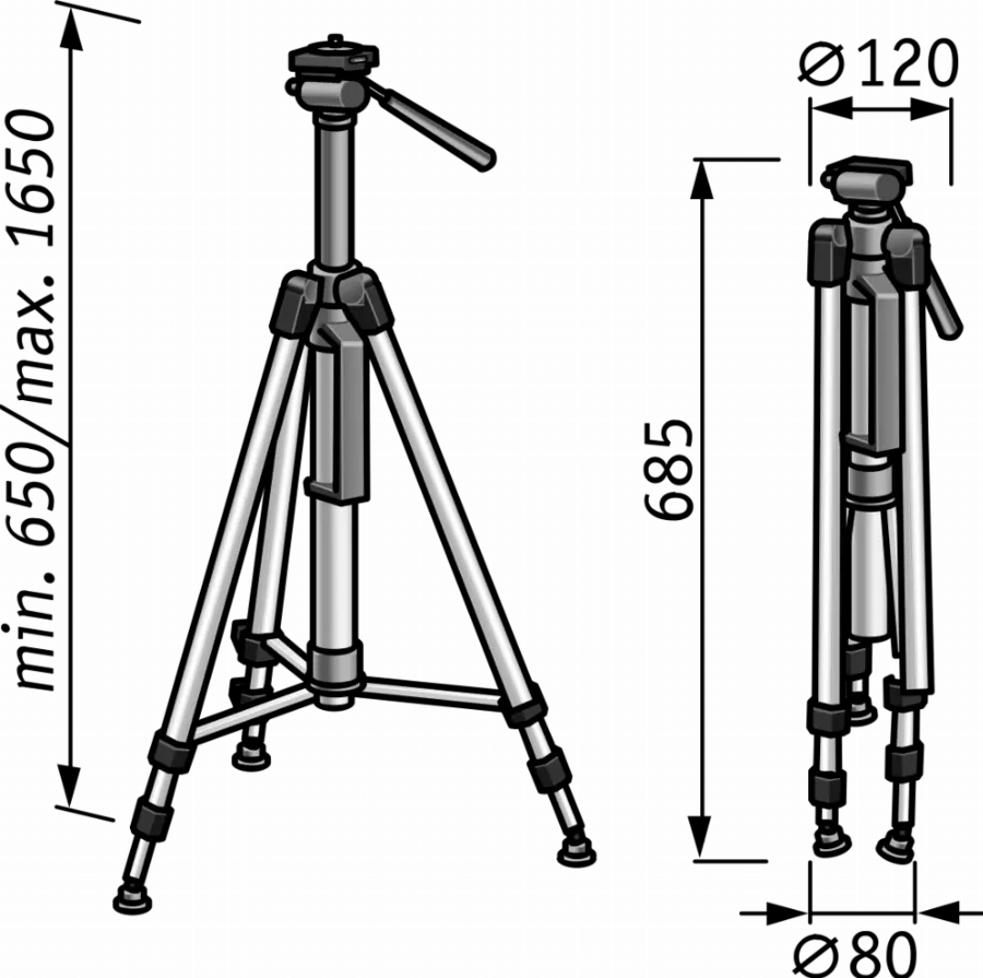 - Plage de travail de 0,65 à 1,65 m